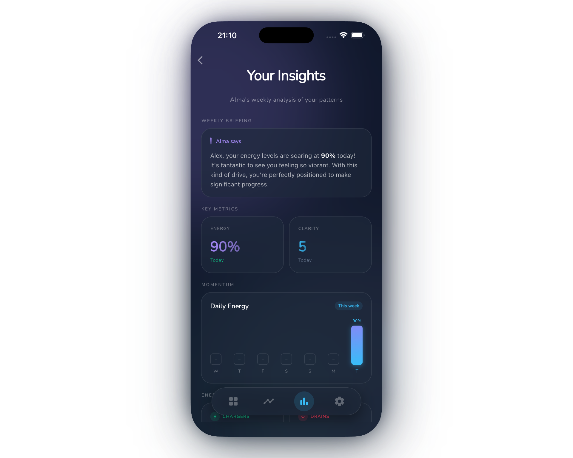 Alma doesn't just chat. She understands your psychological baseline. By recalling emotional triggers from weeks ago, she connects dots you didn't even know were there to provide lifelong, contextualized support.