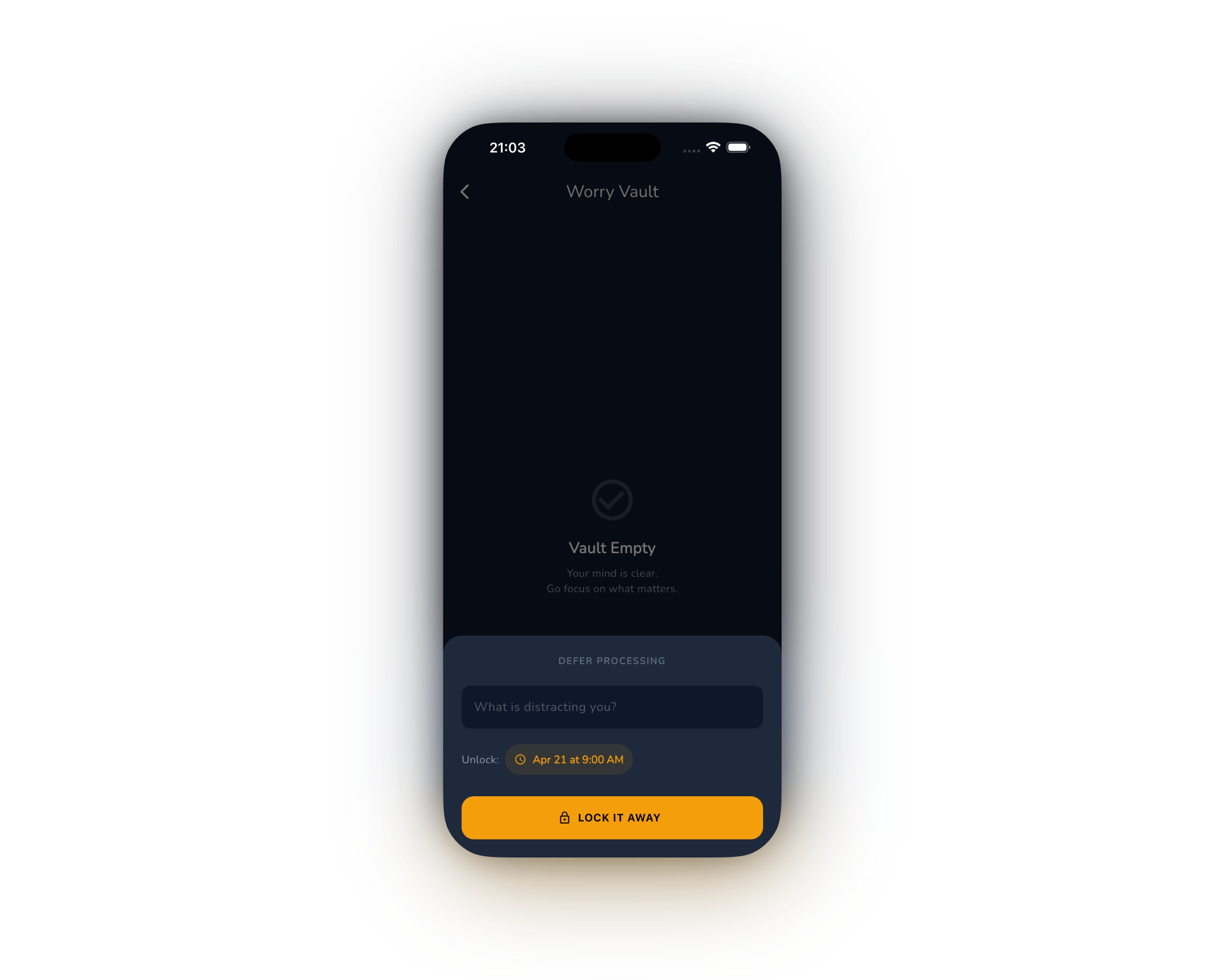 Offload looping, intrusive thoughts so you can focus on the day. Alumea securely stores them, then gently checks in 8 hours later to guide you through a structured, clinical resolution exercise when you're calm.
